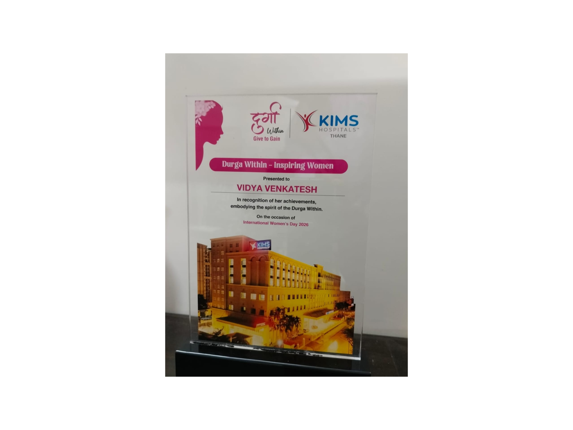 On the occasion of Women’s Day, Vidya Venkatesh was honoured by KIMS Hospital, Thane, as one of the Nav Durga women recognised for inspiring contributions to society. She received this recognition for her sustained work in wildlife conservation and her leadership in driving community-based conservation initiatives in India.